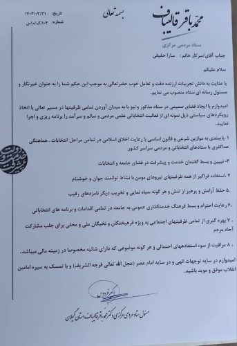 سارا حقیقی به عنوان مسئول رسانه ای ستاد مردمی قالیباف در استان گیلان معرفی شد