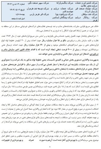 بذل و بخشش دقیقه نودی مدیران بنادر و دریانوردی از جیب سرمایه گذاران ترمینالهای نفتی بندر شهید رجایی