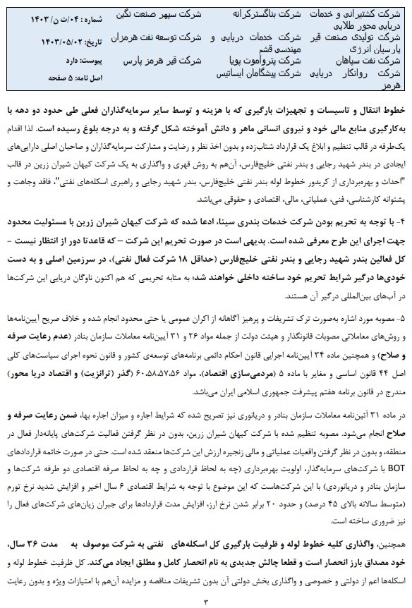 بذل و بخشش سازمان بنادر و دريانوردي از محل سرمايه گذارى انجام شده ترمينال داران نفتي بخش خصوصى بندر شهيد رجايي وبندر نفتي خليج فارس به خصولتي هاي زير مجموعه بنياد مستضعفان و فرياد و استمدادترمینال داران نفتی از دفتر رهبری و رئیس جمهور منتخب؛ قراردادی که در دقیقه نود حق سرمایه گذاران ترمینالهای نفتی بندر شهید رجایی و بیت المال را لگدمال می کند !