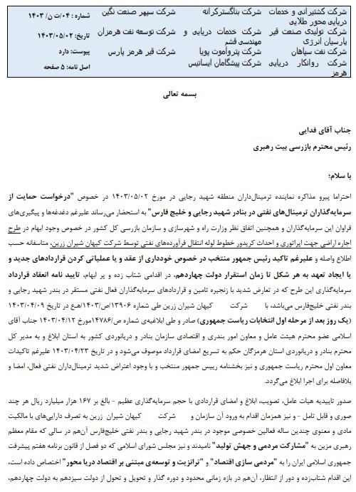 بذل و بخشش دقیقه نودی مدیران بنادر و دریانوردی از جیب سرمایه گذاران ترمینالهای نفتی بندر شهید رجایی ؛